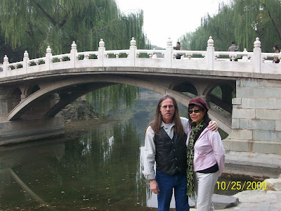 Summer* this one is for you. The Phoenix is the sign of the "Rooster" (NIckie) and the Dragon is the sign of the "Dragon" (Me) . These are the two most powerful signs in the Chinese Zodiac! So here are Nickie and I. This palace has the longest covered walkway in the world. The big marble boat is to symbolize "stability" and the bridge was just nice. This will be all for this week, check back in a week or so to see the Great Wall, Jade Factory, Sacred Road and the Hutong Alleys......